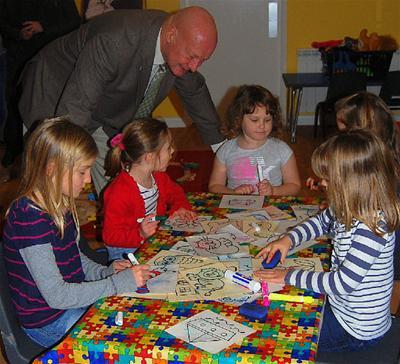 The photos show Councillor Barry Parsons and some of the Scallywags children at the opening of the Jubilee Suite.